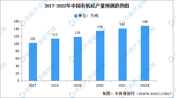 近年來,國內(nèi)有機(jī)硅行業(yè)擴(kuò)產(chǎn)穩(wěn)步推進(jìn),2020年有機(jī)硅產(chǎn)量約為134萬噸,行業(yè)產(chǎn)能利用率為79.3%。有機(jī)硅材料由于其特性而被大量應(yīng)用于半導(dǎo)體、新能源車、5G等產(chǎn)業(yè),隨著這些新興產(chǎn)業(yè)的快速發(fā)展,有機(jī)硅產(chǎn)量也將進(jìn)一步增長。預(yù)計(jì)2022年有機(jī)硅產(chǎn)量將進(jìn)一步增長至148萬噸。