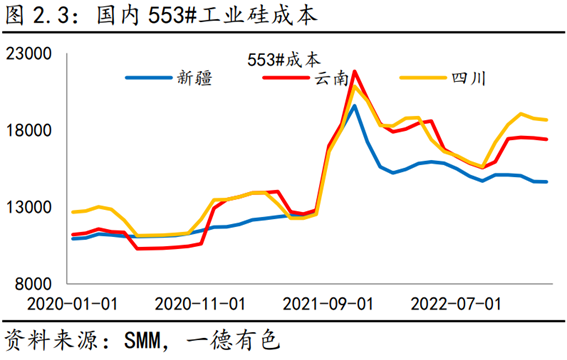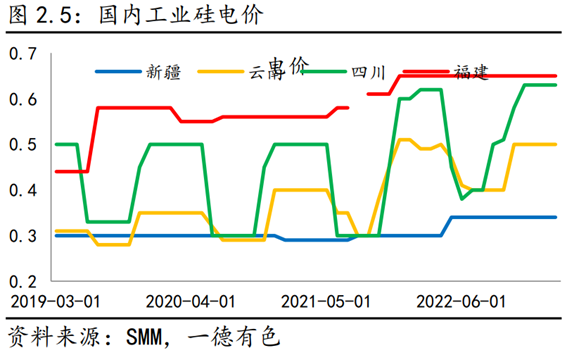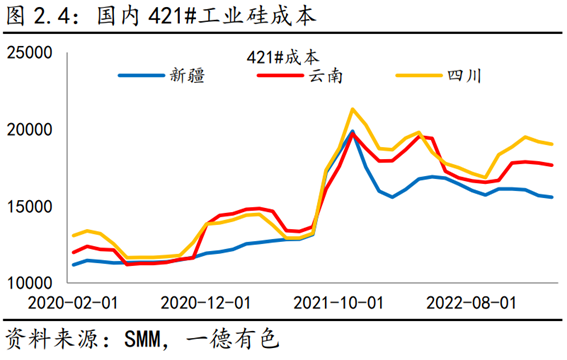 電力供應及電價問題成為制約南方工業(yè)硅企業(yè)順利生產(chǎn)的主要問題,據(jù)了解云南地區(qū)執(zhí)行電價相較2022年比上調(diào)了3分/度;福建地區(qū)若進線電壓高即過網(wǎng)費低,當下綜合電價最低為6.2毛/度,過網(wǎng)費高的企業(yè)執(zhí)行綜合電價達到6.6-6.7毛/度。同時福建地區(qū)亦有水電,也開始執(zhí)行浮動電價,一般年底枯水期電價會有所上漲5分/度左右,且今年開始執(zhí)行尖峰電價,當?shù)仄髽I(yè)電力成本呈現(xiàn)上漲態(tài)勢。