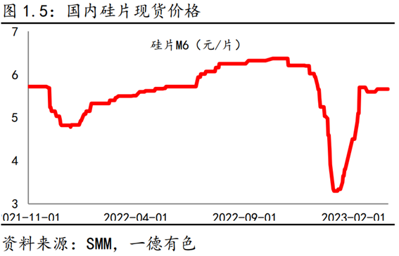 據(jù)統(tǒng)計2023年一季度新增產(chǎn)能10-15萬噸,二季度新增產(chǎn)能30萬噸,三季度新增產(chǎn)能50萬噸,四季度新增產(chǎn)能10萬噸,由于投產(chǎn)后需要2-3個月出產(chǎn)品,產(chǎn)品爬坡期為3-6個月,因此下半年多晶硅產(chǎn)量貢獻較多。
