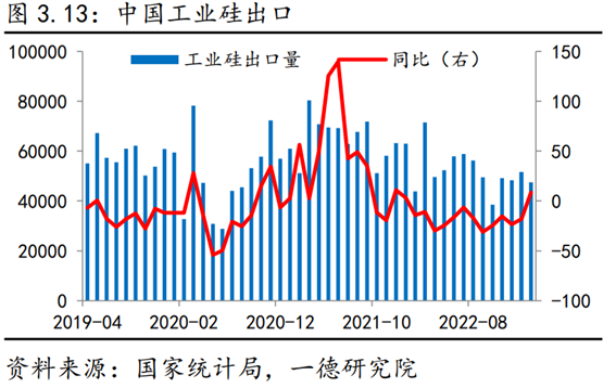據(jù)海關統(tǒng)計2023年1-2月份中國工業(yè)硅累計凈出口9.94萬噸,同比減少0.3%,預計全年凈出口量63萬噸,同比增長1.6%。歐洲雖然力推《工業(yè)凈零法案》,但落地尚需要時間,2023年對出口市場難以形成實質(zhì)性影響。