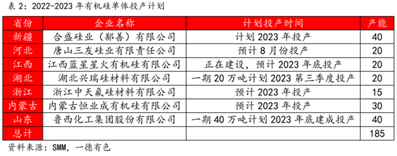 據(jù)統(tǒng)計2023年新增產(chǎn)能累計185萬噸,預計全年有機硅產(chǎn)量210萬噸,增速13.5%,對應工業(yè)硅消費109萬噸左右,增量13萬噸。