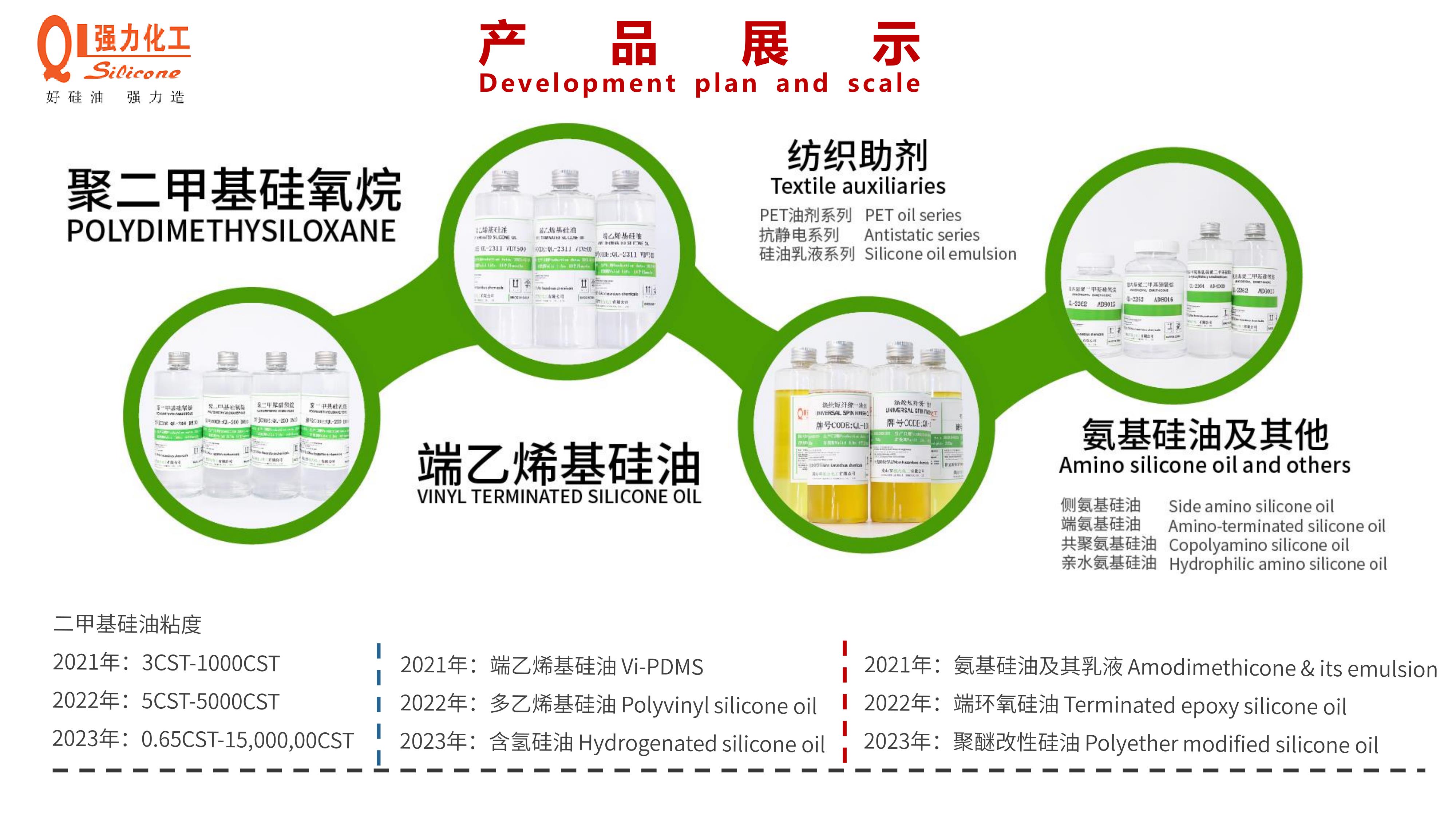 集研發(fā),創(chuàng)新,生產(chǎn),銷售相結(jié)合,重點(diǎn)以生產(chǎn)研發(fā)有機(jī)硅新材料:以二甲基硅油、乙烯基硅油為主,以羥基硅油、有機(jī)硅乳液,氨基硅油,紡織助劑為輔的多元化化學(xué)工廠。