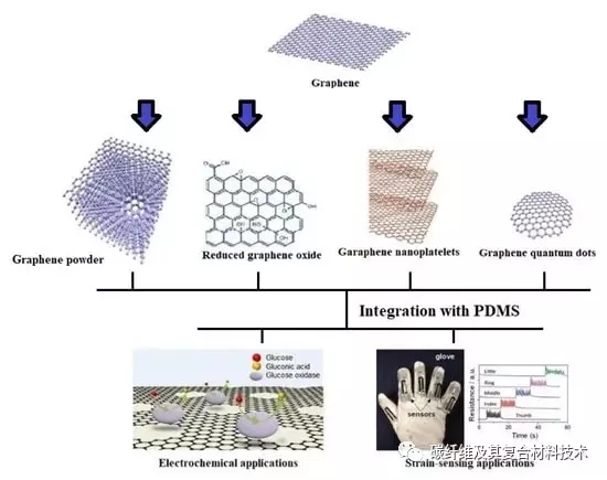 此外,還有一些導(dǎo)電聚合物,例如聚苯胺(PANI)、聚乙炔(PA)、聚吡咯(PPy)和聚(3,4-乙烯二氧噻吩)聚苯乙烯磺酸鹽(PEDOT:PSS),它們需要極少量甚至不需要金屬納米顆粒來形成導(dǎo)電通路。在上述聚合物中,聚二甲基硅氧烷(PDMS)性質(zhì)相似,兩者都具有化學(xué)惰性、光學(xué)透明、疏水性,且大多具有生物相容性,因此PDMS與石墨烯形成復(fù)合材料的材料。此外,已知PDMS與納米填料形成強(qiáng)界面結(jié)合。這些復(fù)合材料可以為目前可用的健康手環(huán)、葡萄糖傳感器和智能手表增加新的維度,用于監(jiān)測人體生理狀態(tài)的響應(yīng)性和準(zhǔn)確性。