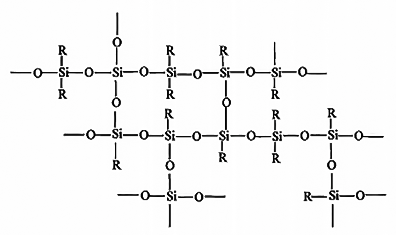 硅樹脂是高度交聯(lián)的網(wǎng)狀結(jié)構(gòu)的聚有機硅氧烷,通常是用甲基三氯硅烷、二甲基二氯硅烷、苯基三氯硅烷、二苯基二氯硅烷或甲基苯基二氯硅烷的各種混合物,在有機溶劑如甲苯存在下,在較低溫度下加水分解,得到酸性水解物。水解的初始產(chǎn)物是環(huán)狀的、線型的和交聯(lián)聚合物的混合物,通常還含有相當多的羥基。水解物經(jīng)水洗除去酸,中性的初縮聚體于空氣中熱氧化或在催化劑存在下進一步縮聚,最后形成高度交聯(lián)的立體網(wǎng)絡(luò)結(jié)構(gòu)。
